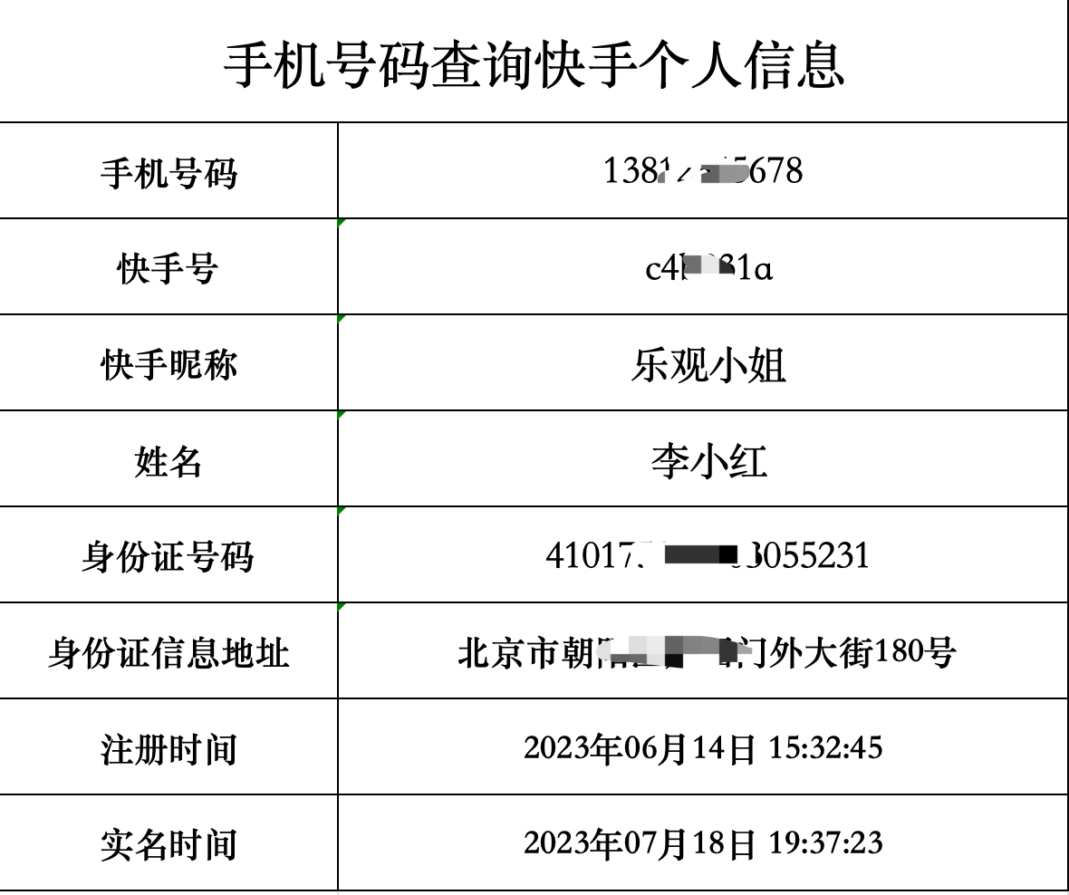快手号正反互查手机号码机主信息